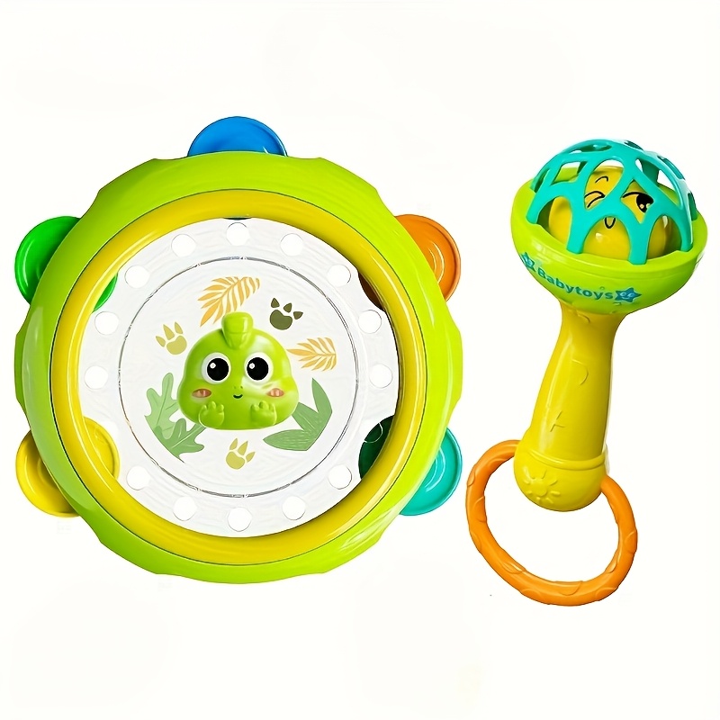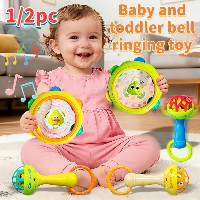 Jucărie drăguță cu clopoțel, tobă și mâner manual, jucărie educativă pentru copii mici care îmbunătățește abilitățile motorii și de prindere, promovează dezvoltarea vizuală și auditivă, jucărie durabilă în culori mixte pentru bebeluși, cadou de Anul Nou 2026 pentru dezvoltarea abilităților motorii